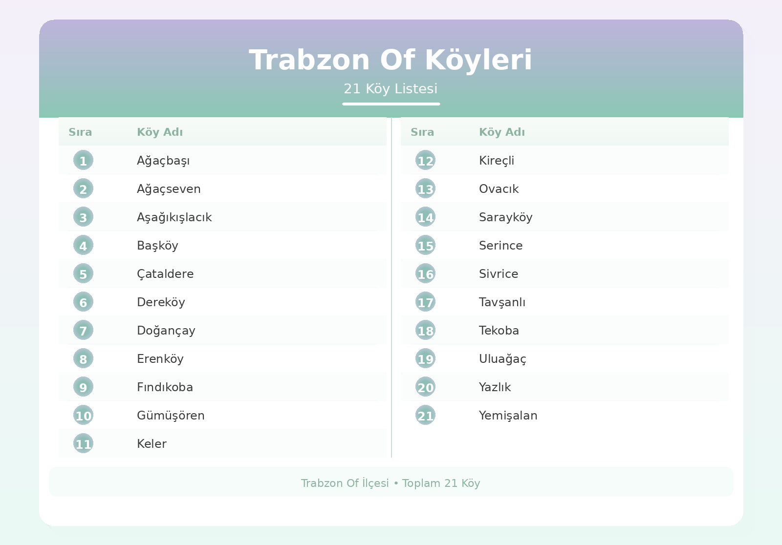 Trabzon’un doğu kesiminde yer alan Of ilçesi, Karadeniz kıyısından iç kesimlere doğru uzanan geniş bir yerleşim ağına sahiptir. İlçe yalnızca merkez yerleşimden ibaret değildir. Sahil hattından dağlık alanlara kadar uzanan çok sayıda köy ve mahalle, Of’un sosyal ve ekonomik yapısını oluşturur. Tarım, özellikle fındık üretimi ve küçük ölçekli hayvancılık bölgedeki temel geçim kaynakları arasında yer alır. Bu nedenle Of köyleri hem üretim hem de geleneksel Karadeniz kültürünü yaşatan yerleşimler olarak dikkat çeker.